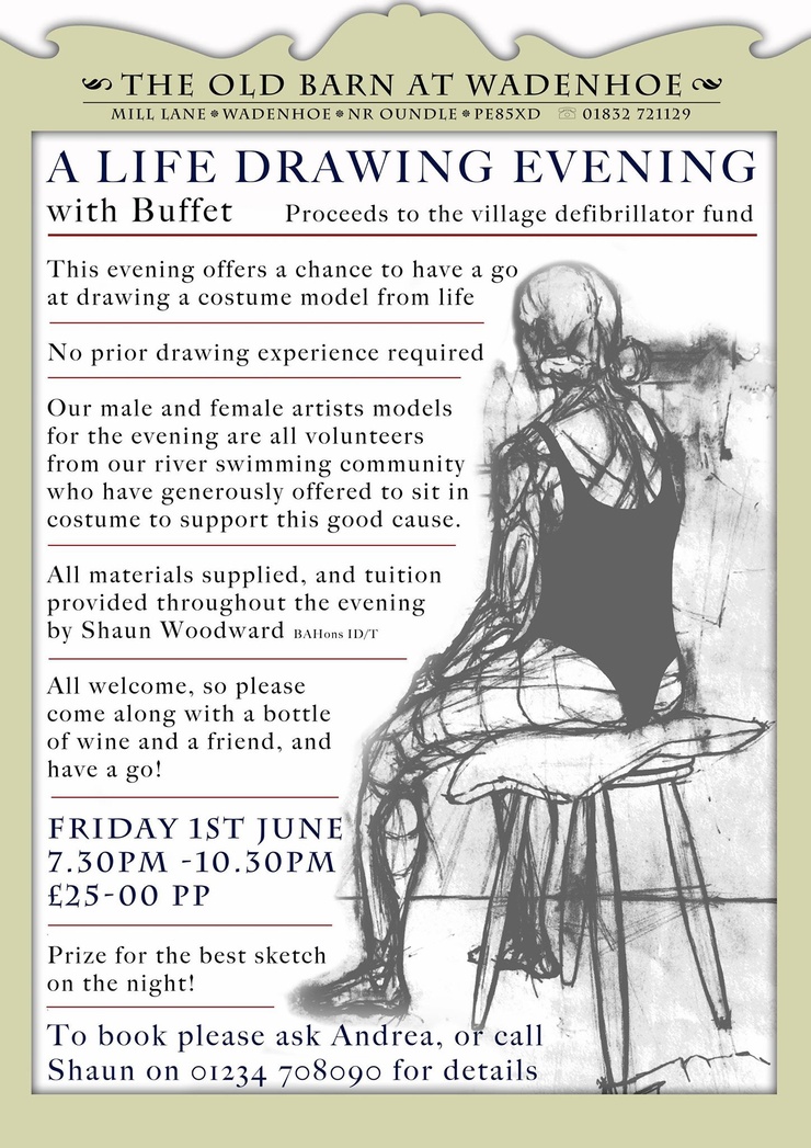 To raise funds, one of our Thursday night swimmers, Shaun Woodward, is organising a Learn to Sketch class at Wadenhoe on Friday 1st June.